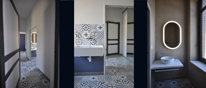à mobilité réduite. Espace particulièrement fonctionnel : de ce fait, les murs sont en béton ciré & les sols en carrelage. |