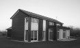 des charges : Matériaux utilisés : bois (structure, façade et terrasse), ardoises naturelles (couverture), acier thermo laqué (garde-corps), alu laqué (menuiserie), acier galvanisé (escalier intérieur), carrelage. Contraintes