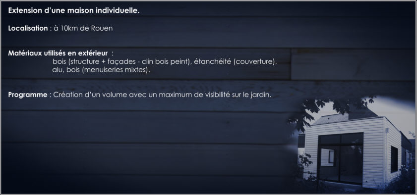 maison individuelle. Isolation doublage et électricité chauffage. A poursuivre Cahier des charges Localisation : à 10km de Rouen Matériaux utilisés : bois (élévation mur), étanchéité (couverture), menuiseries mixte, Programme : Création