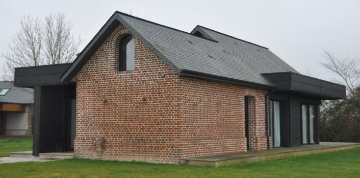 et extension d’un bâtiment agricole avec reprise intégrale des murs en briques rouges et de la toiture en ardoise |