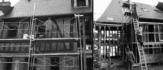 Sur la partie ancienne, les soubassements en grés sont repris, les pans de bois sont consolidés