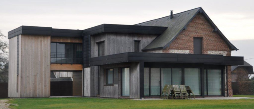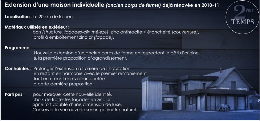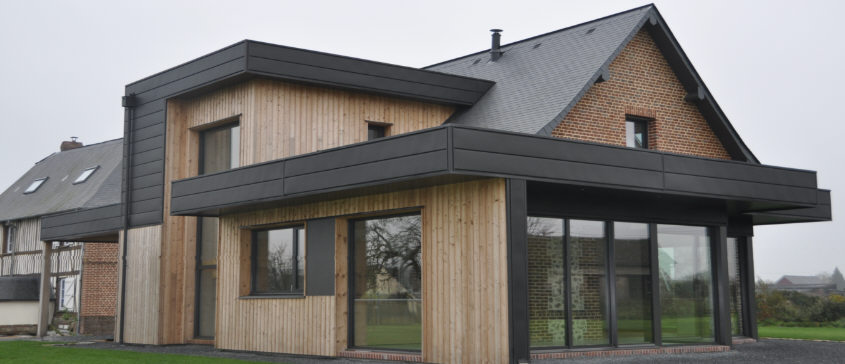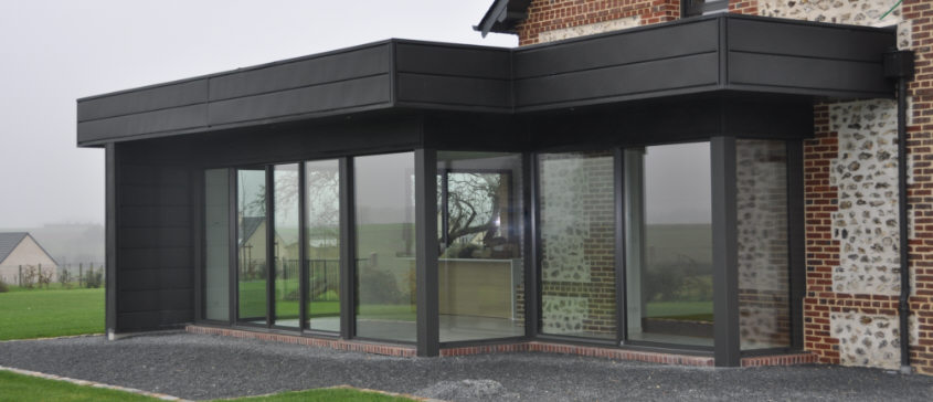 L’ensemble de la structure est en zinc VM anthra et les menuiseries en alu laqué. |