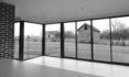vides, la redondance des ouvertures : larges baies courant à l’étage sur passage ouvert entre deux volumes verticaux. |